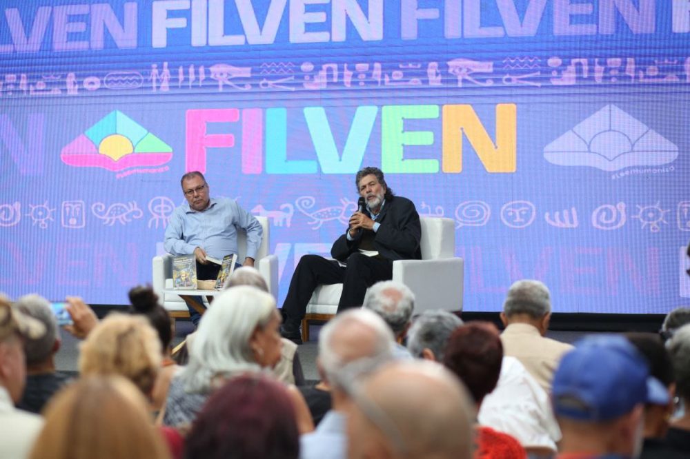 Los autores homenajeados fueron Judith Valencia, Esteban Emilio Mosonyi, Marc de Civrieux, Gonzalo Fragui y Juan Calzadilla. El país invitado fue la República Árabe de Egipto, quien participó con obras de sus autores y una gran muestra cultural en la carpa de la Plaza de la Juventud. La 21° FILVEN fue territorio de palabras rebeldes, integración y futuro. ![]() Presentación del libro “Un gigante en movimiento” junto a su autor Sergio Rodríguez Gelfenstein, Fernando Roperto y Ramón López ![]() Presentación del libro “Él es la revolución: biografía política de Simón Bolívar” de Sergio Guerra Vilaboy (Cuba) ![]() El Poeta de la Revolución, Tarek William Saab Halabi (Fiscal General de la Nación), festejó sus 45 años con la literatura ![]() Pascualino Angiolillo (MG de la FANB), uno de los escritores de nuestro sello junto a la Primera Magistrada de la República Caryslia Beatriz Rodríguez ![]() Giordana García Sojo, exviceministra de Cultura y presidenta de la Fundación Editorial El perro y la rana, y actual editora de Nila, junto a nuestro compañero Fernando Roperto compartiendo libros editados por ambas editoriales de libros del poeta salvadoreño Roque Dalton ![]() Abel Prieto, presidente de Casa de Las Américas, acompañado por Raúl Cazal, viceministro de Fomento para la Economía Cultural y presidente del Centro Nacional del Libro (Cenal), en la sala Filven, presentaron el libro “Simón Bolívar y nuestra independencia”, del escritor Néstor Kohan de Argentina |